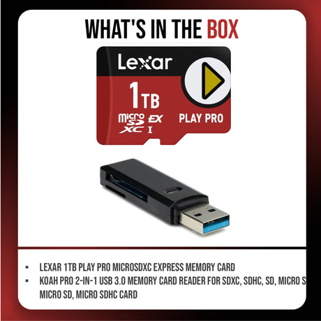 Lexar 1TB PLAY PRO Express Memory Card with 2-in-1 USB 3.0 Card Reader Bundle