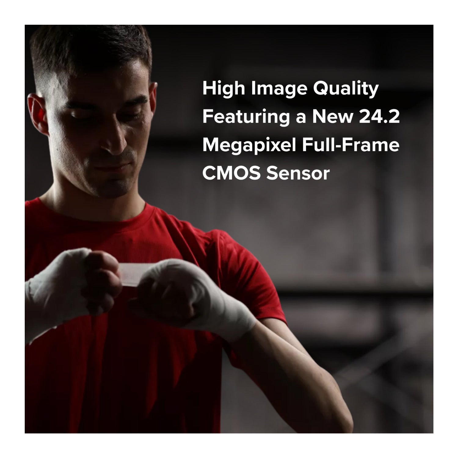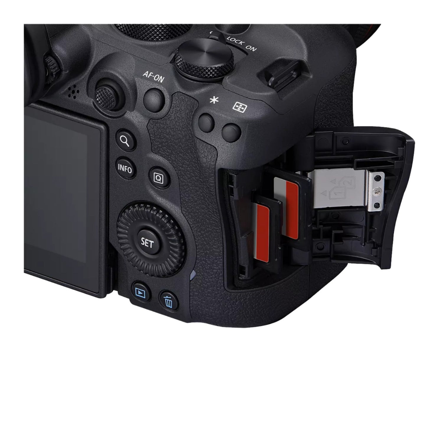 Equipped with a Canon-designed 24.2 Megapixel full-frame CMOS sensor, the EOS R6 Mark II delivers sharp, detailed images even in low-light conditions. Paired with the DIGIC X processor, it enables fast performance, powerful image processing, Dual Pixel CMOS AF II, and advanced video recording.