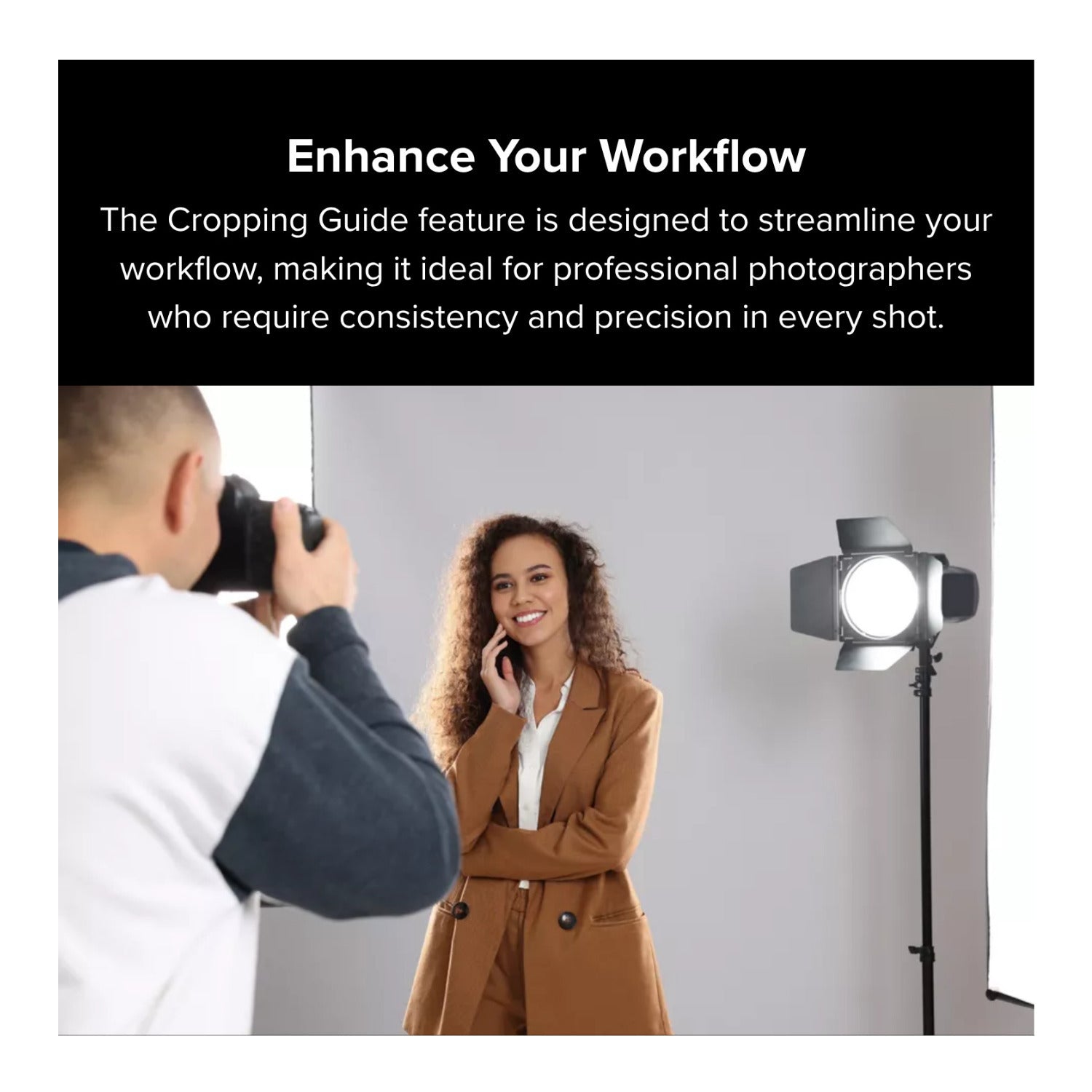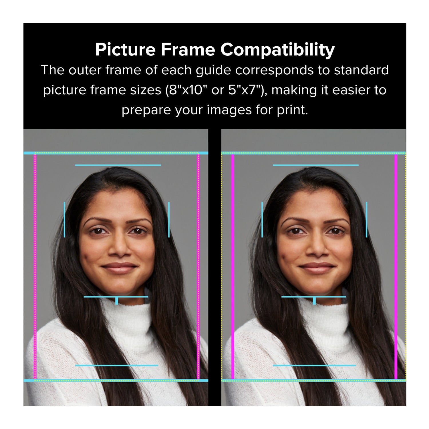 Canon’s innovative Cropping Guide brings intuitive composition to life. Whether you're photographing school portraits, sports action, or staged setups, this feature ensures your subject is consistently framed. The guide includes options for head sizes and horizontal or vertical compositions, and is compatible with standard picture frame dimensions like 8 in x10 in and 5 in x7 in.