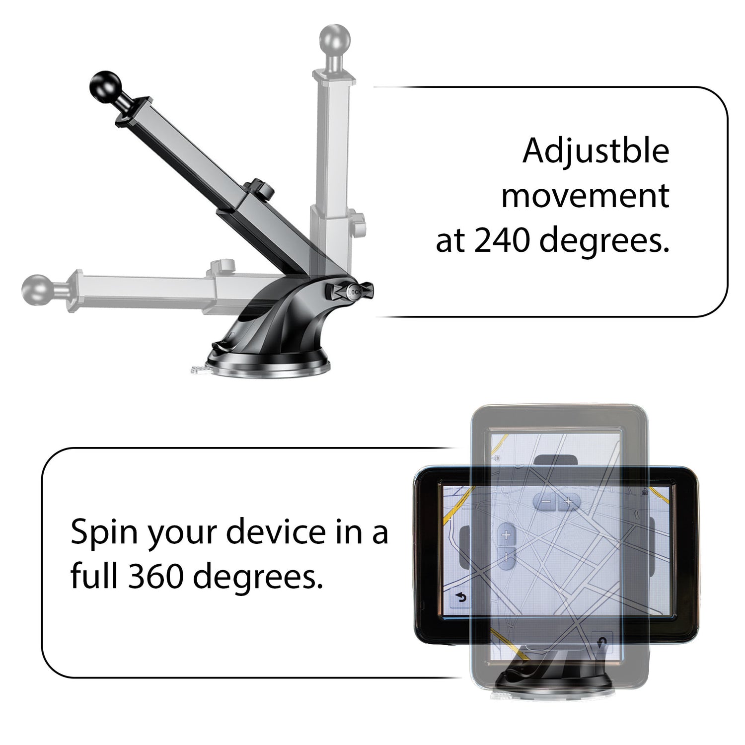 Knox Gear GPS Suction Cup Mount with Lightweight Design, Adjustable Height, and Pivoting Arm (Black)