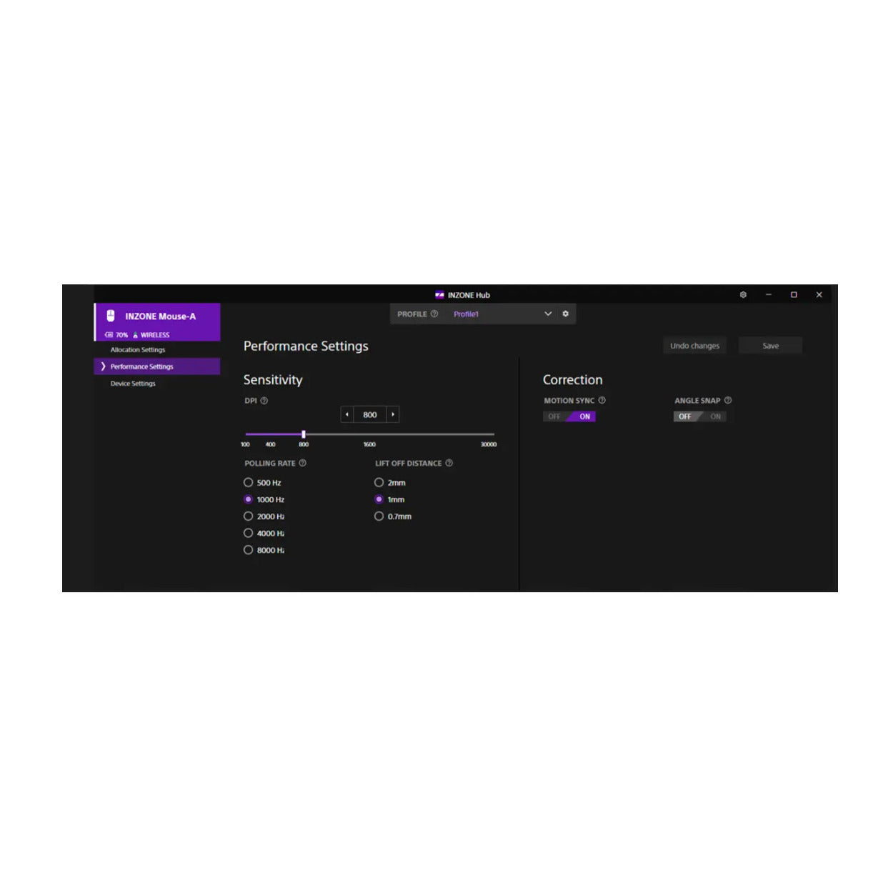 The INZONE Hub puts full customization at your fingertips.1 Adjust DPI, polling rate, button functions, and more—then save it all to game-specific profiles for quick access. Available in both software and web versions.
