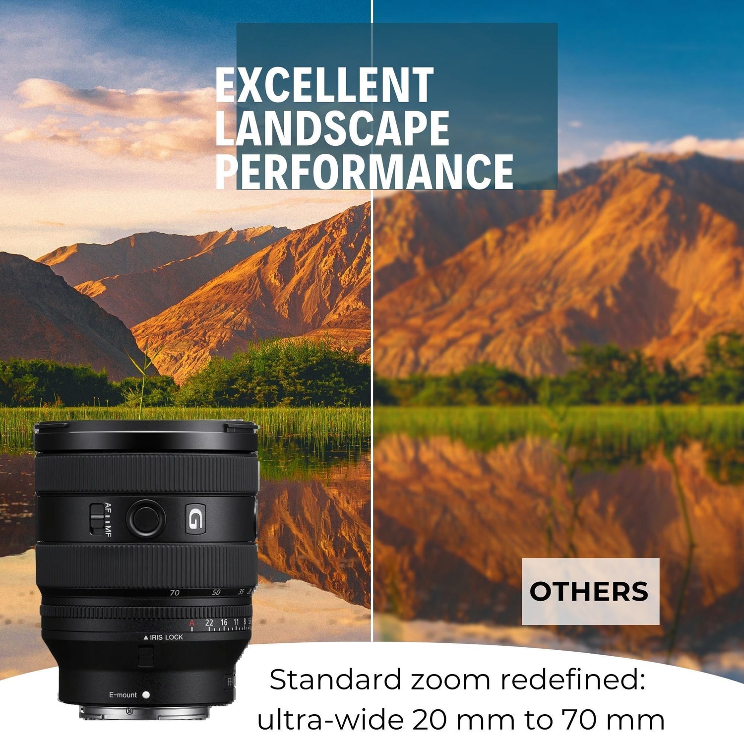 With an unprecedented ultra-wide 20 mm to mid-telephoto 70 mm zoom range, this versatile lens is an excellent choice for a wide range of movie and still subjects. The ultra-wide 20 mm end of the zoom range maintains a wide angle of view when shooting movies with a 16:9 or 2.35:1 aspect ratio that reduces the field of view.