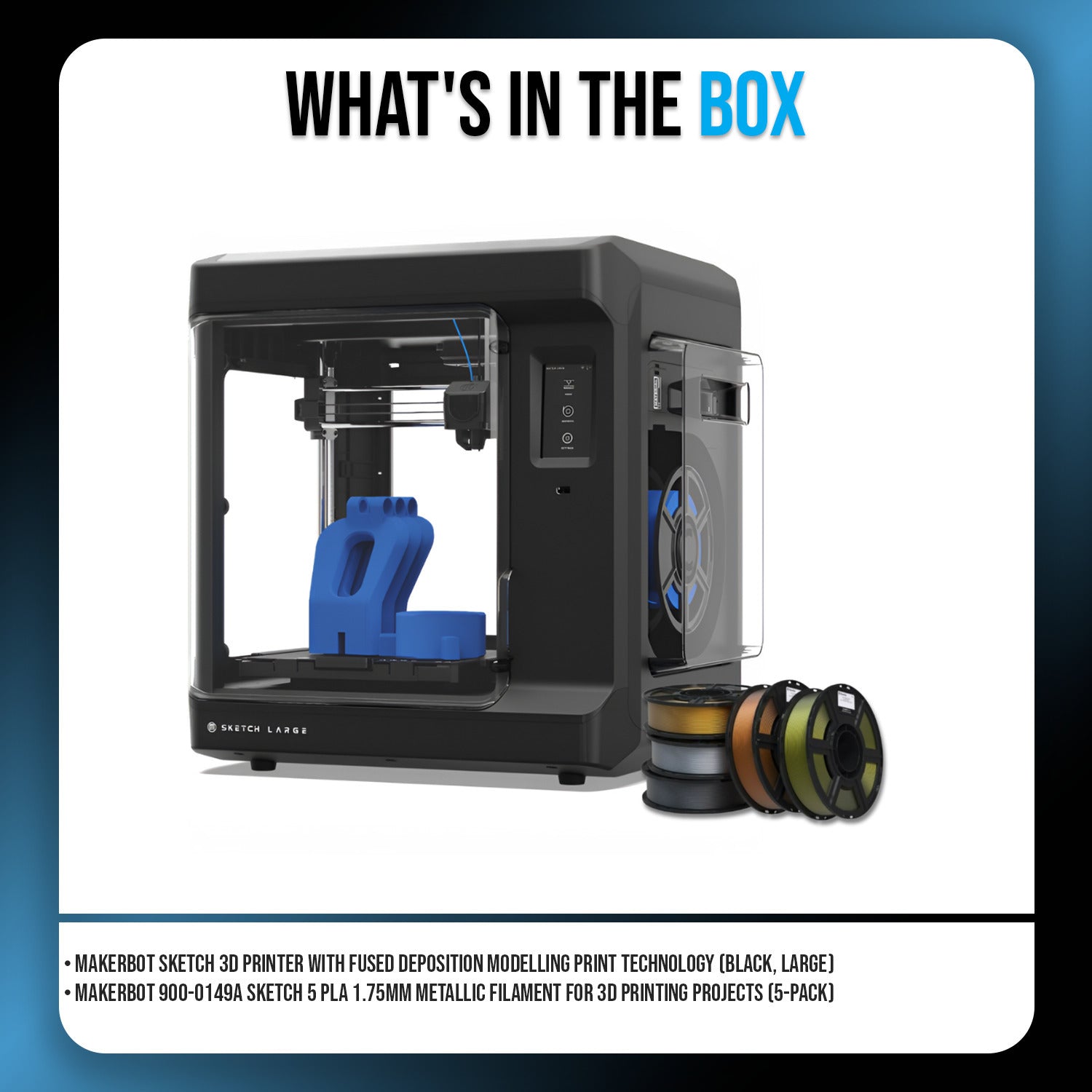 MakerBot Sketch 3D Printer (Black, Large) and 5 PLA 1.75mm Metallic Filament (5-Pack) Bundle
