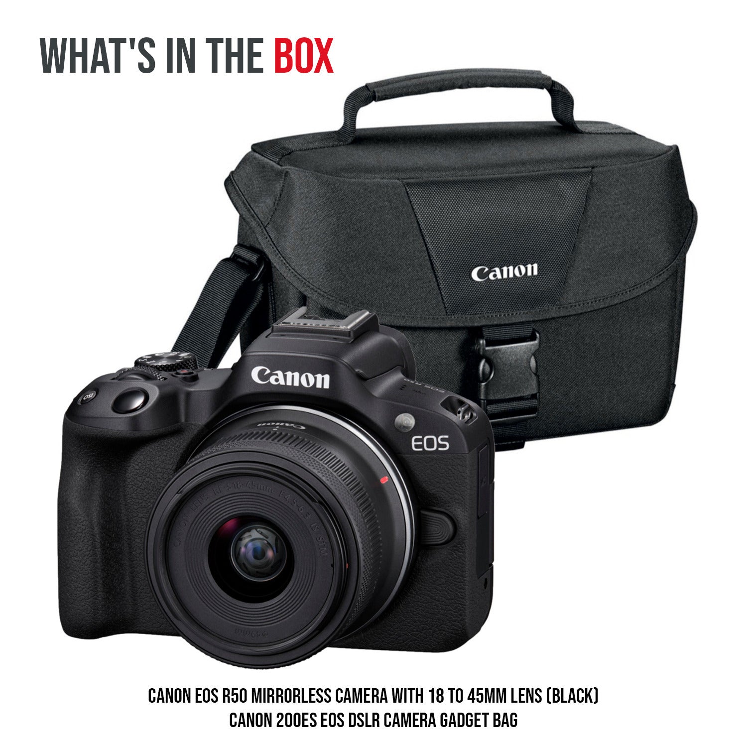 Canon EOS R50 Mirrorless Camera w/18-45mm Lens +Eos 200ES Shoulder Bag (Black)