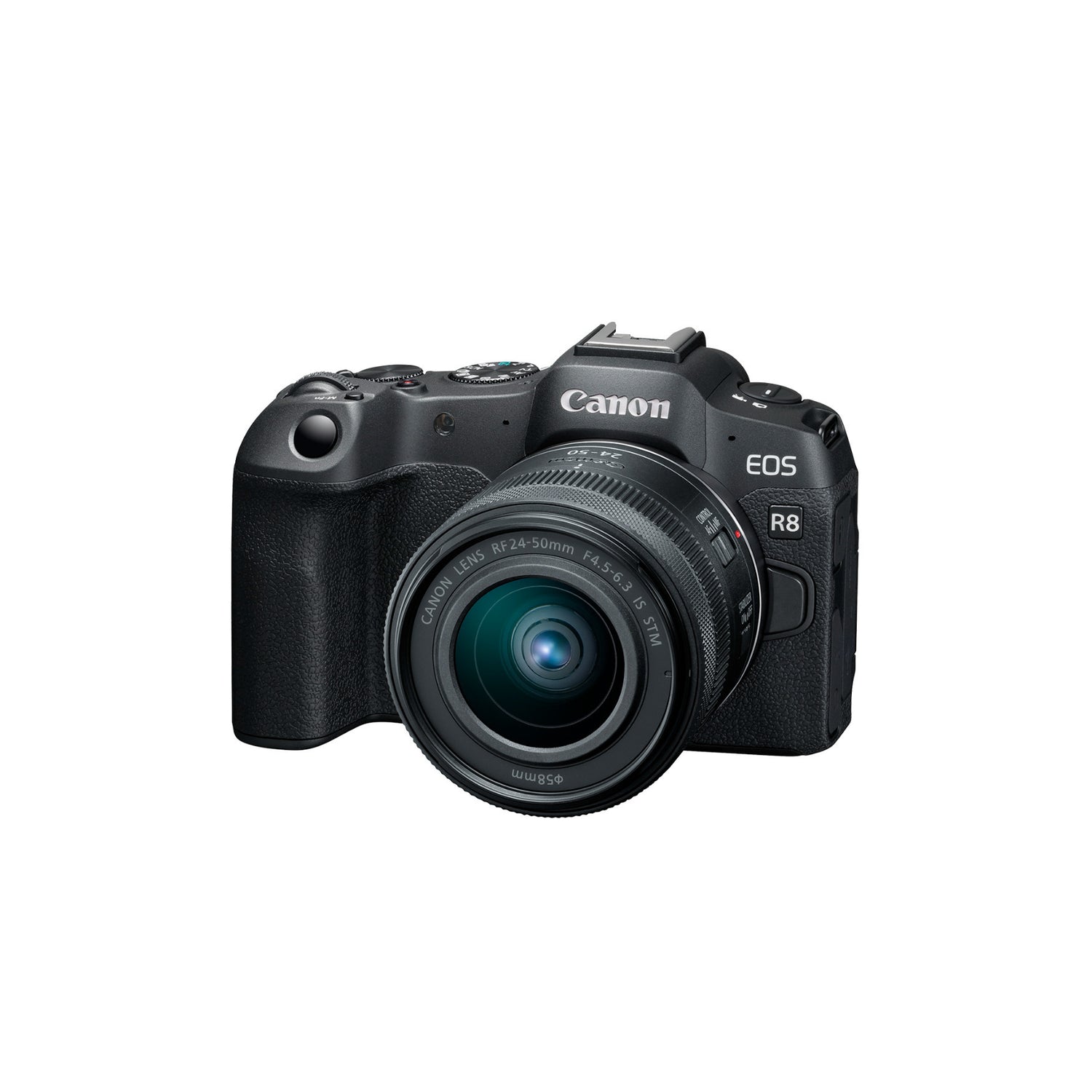 The EOS R8 combines high-performance full-frame capabilities with a lightweight and compact design. With a 24.2 megapixel full-frame CMOS sensor, full use of EOS R-series interchangeable lenses, and highly advanced functionality and performance, the EOS R8 can deliver high-quality stills and movies. The new RF24–50mm F4.5-6.3 IS STM standard zoom lens is a super-compact, wide to-standard focal length zoom lens perfect for anyone looking for strong wide-angle still imagery and video combined with easy handling and portability