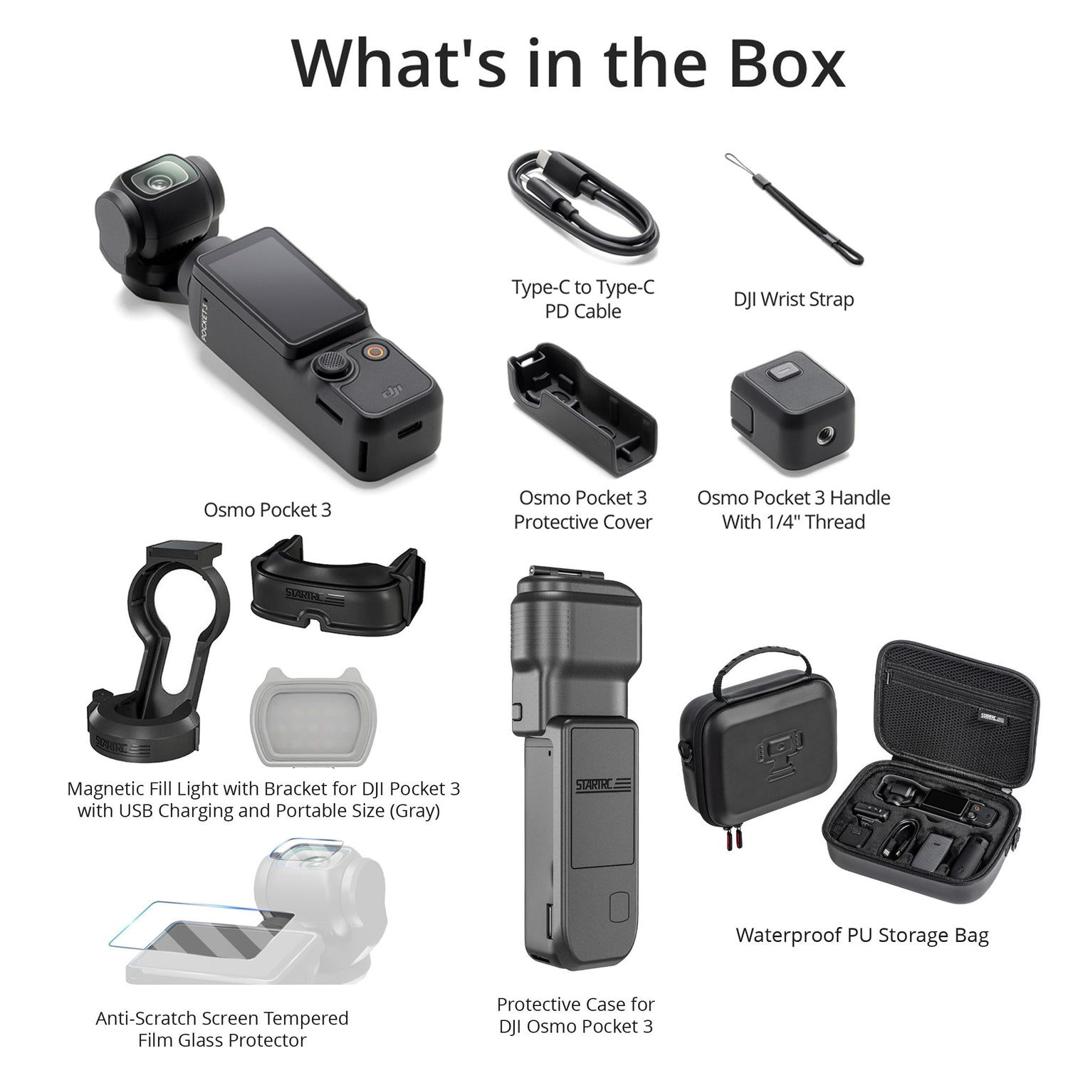 STARTRC PU Storage Bag for DJI Osmo Pocket 3 Action Camera with Water-Resistant Design (Black)
