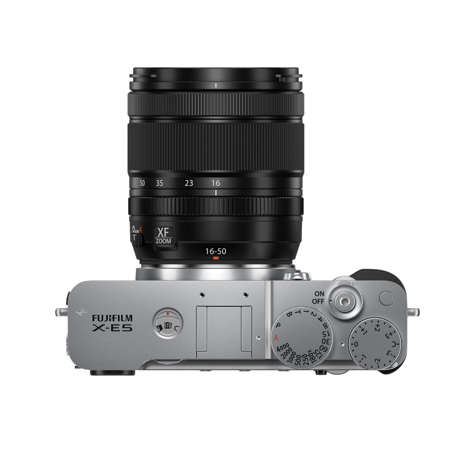 With analog-style controls and a machined aluminum top plate, X-E5 offers a traditional tactile experience in a small, portable form factor.