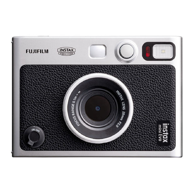 The FUJIFILM INSTAX MINI EVO is a stylish hybrid instant camera that blends digital convenience with classic instant film photography. Featuring 10 lens effects and 10 film effects, it offers up to 100 creative combinations for capturing unique 2 x 3 inch prints on INSTAX MINI film. Its retro-inspired design, complete with tactile dials and a print lever, makes shooting and printing an engaging hands-on experience.