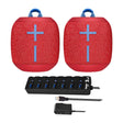 Ultimate Ears WONDERBOOM 2 Portable Bluetooth Speaker Pair (Radical Red) with 7-Port USB 3.0 Hub