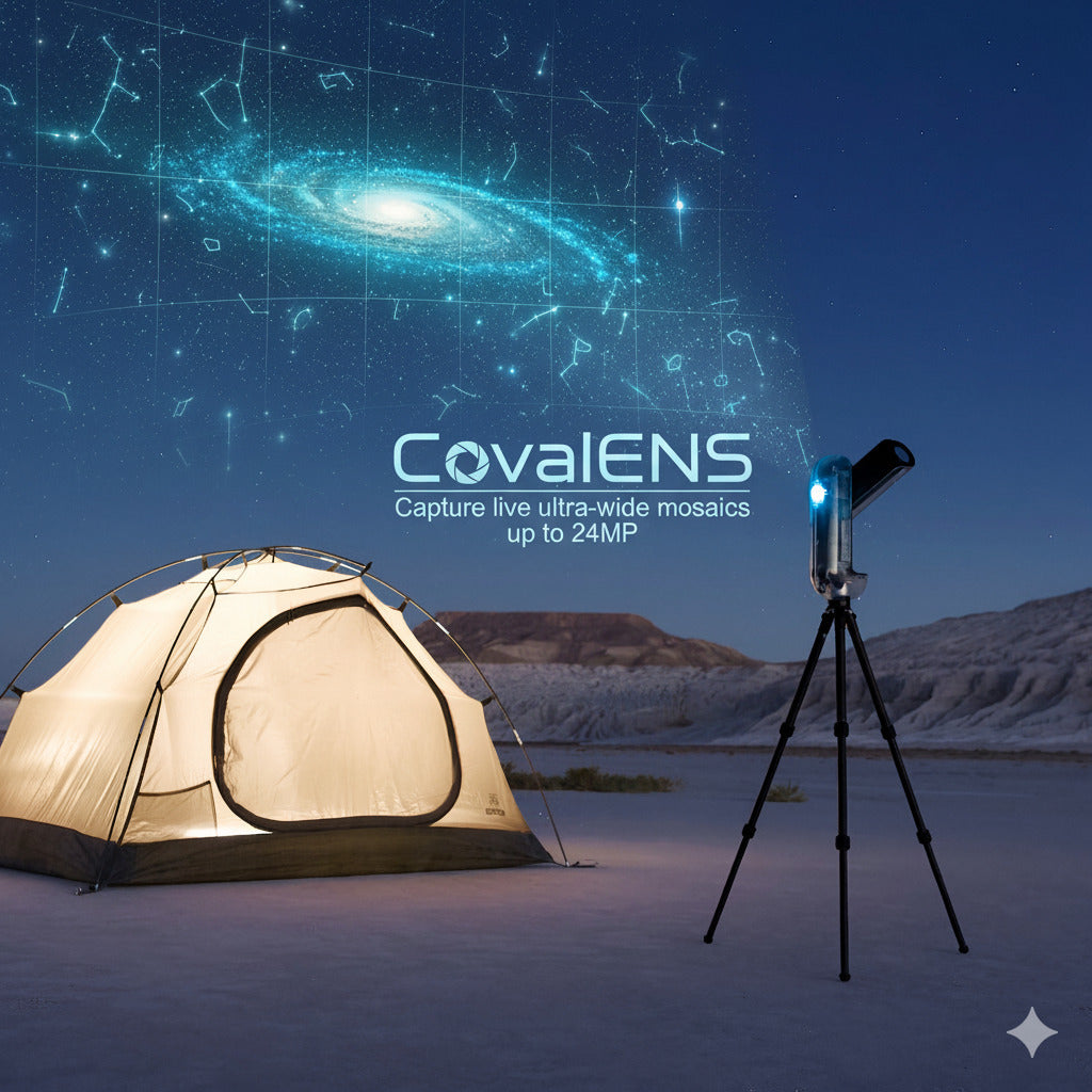 Powered by ENS Technologies, the Vespera II introduces powerful intelligent tools. CovalENS enables live ultra-wide mosaics up to 24MP, PerseverENS stacks observations across multiple nights for enhanced deep-sky detail, and LumENS acts as an AI-powered astronomy assistant for guided exploration.