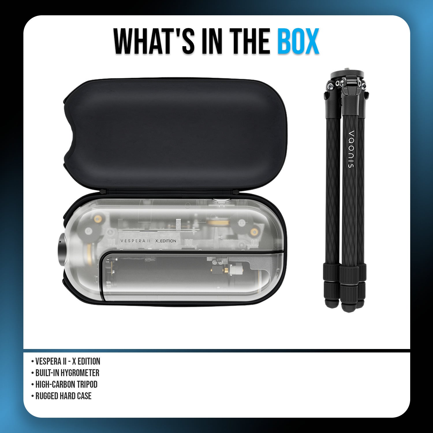 Portable, durable, and intuitive, the Vespera II – X Edition makes astrophotography accessible to both beginners and enthusiasts. With fast setup and breathtaking deep-sky results, it transforms stargazing into a seamless, modern, and connected experience.