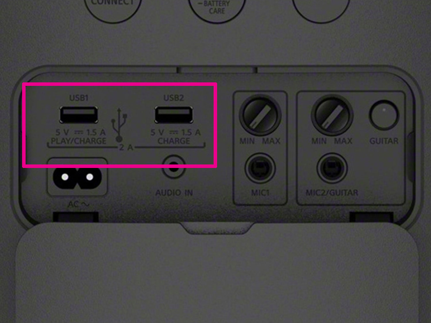 Plug your smartphone or media device into one of the rear USB ports and play music while it charges via the speaker’s power supply. You can also plug a USB memory stick or flash drive into a USB port to play your digital files.