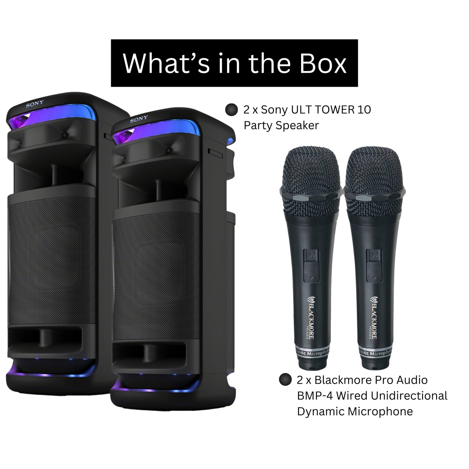 Sony SRSULT1000 ULT TOWER 10 Party Speaker (Black, 2-Pack) with Microphone (Black, 2-Pack) Bundle