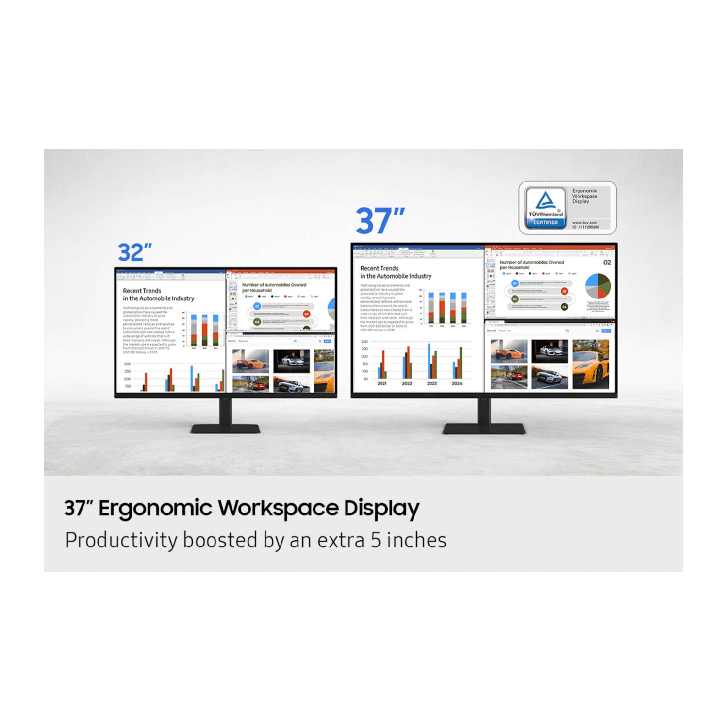 Revolutionize your workspace with the world's first 37-Inch UHD monitor. The additional 5 inches compared to a 32-Inch display provide a 100% UHD experience without the need to scale down for better readability. With the expanded workspace, you can tackle complex tasks with ease and boost your productivity. Plus, the 37-Inch screen is TUV-certified for eye comfort and designed to reduce visual fatigue — helping you stay focused during long work sessions.