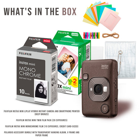 Fujifilm Instax Mini LiPlay Hybrid Instant Camera and Smartphone Printer (Deep Bronze) Bundle