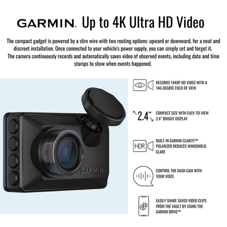 Garmin Dash Cam X310 Compact 4K Camera with 140-Degree Field of View and Voice Control (Black)