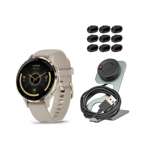 Garmin Venu 3 Smartwatch (Silver/Whitestone) with Charging Stand and Port Plugs