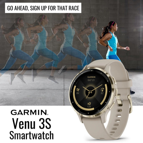 Garmin Venu 3S Soft Gold Stainless Steel Bezel Smartwatch with Ivory Case and Silicone Band Bundle