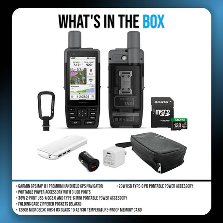 Garmin GPSMAP H1 Premium Handheld GPS Navigator Bundle with 128GB MicroSD Card