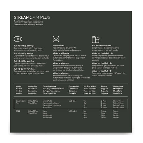 Logitech StreamCam Plus Webcam with Tripod (Graphite) and Webcam Stand with Selfie Ring Light