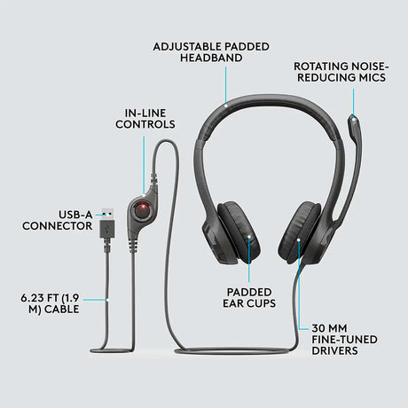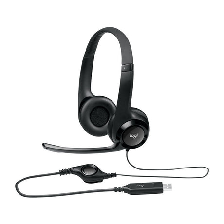 Logitech H390 USB Computer Headset with Noise-Canceling Microphone and Adjustable Headband (Black)