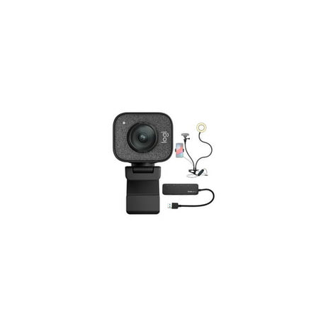 Logitech StreamCam Plus Webcam with Tripod (Graphite), USB Hub, and Ring Light