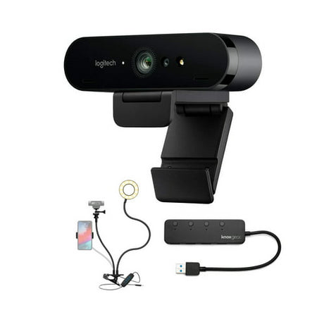Logitech Brio Ultra HD Webcam with Knox Gear Selfie Ring Light and 4-Port USB Hub Bundle