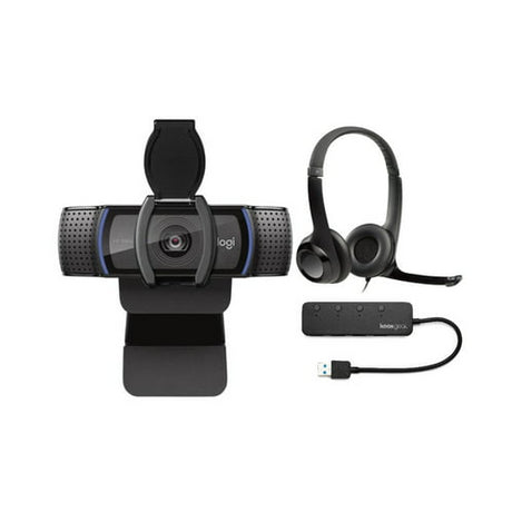 Logitech C920S Pro HD Webcam with H390 USB Headset with Noise-Canceling Mic and Knox 4-Port USB Hub