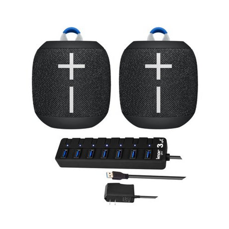 Ultimate Ears WONDERBOOM 2 Portable Bluetooth Speaker Pair (Deep Space) with Knox Gear 7-Port USBHub