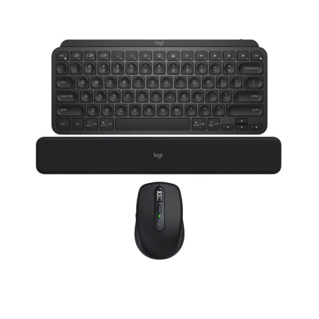 Logitech MX Keys Mini Minimalist Wireless Illuminated Keyboard (Black) w/Bluetooth Mouse & Palm Rest