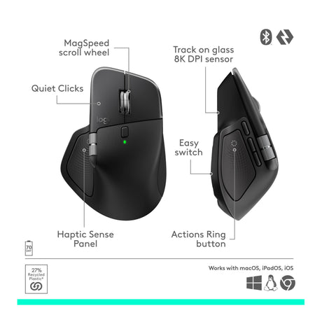 Logitech MX Master 4 Wireless Mouse - 8000 DPI Sensor, Multi-Device (Black)
