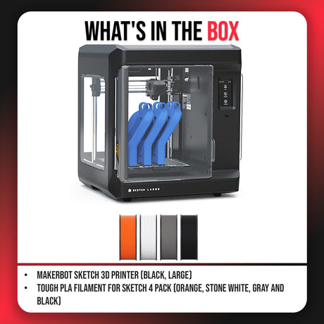 MakerBot Sketch 3D Printer (Black, Large) with Tough PLA Filament for Sketch 4 Pack Bundle