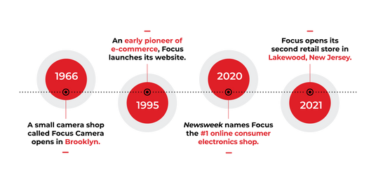 It all started with a little camera shop in Brooklyn. Founded by Abe Berkowitz in 1966, Focus has faithfully served the New York City Metropolitan Area for over half a century. In that time, we’ve built a tight knit community of photographers, videographers, musicians, and other creators passionate about reaching their goals.