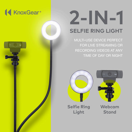 Knox Gear Selfie Ring Light Stand with Cell Phone Holder and Webcam/Camera Mount
