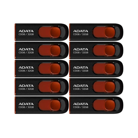 Adata C008 32GB USB 2.0 Retractable Flash Drive (Red) with USB 3.0 to USB-C Adapter (10-Pack)