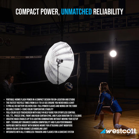 Westcott FJ400 II 400Ws Compact Touchscreen Strobe with FJ Pro AC and DC Battery