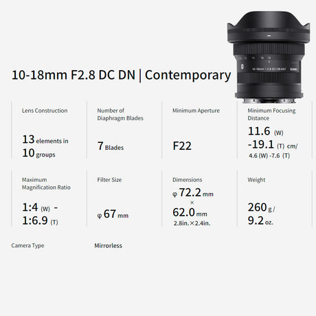 SIGMA 10-18mm F2.8 DC DN Contemporary Ultra-Wide-Angle Zoom Lens for Sony E Mount