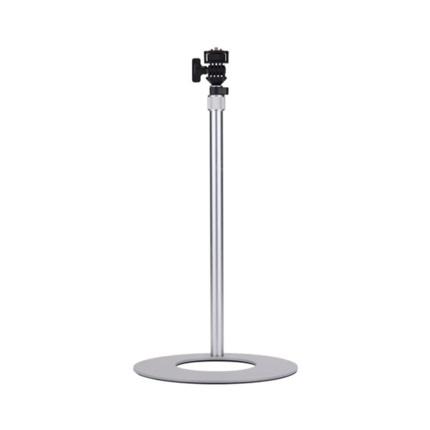 The Amaran Desk Stand is a height-adjustable aluminum stand with a sturdy steel base, designed for supporting the Amaran Verge and other 1/4-20in compatible gear. Ideal for desktop streaming and tabletop content creation, it offers smooth height adjustment from 55cm to 87cm, a tilting mechanism for precise positioning, and a weighted, padded base for stability and surface protection. It features a universal 1/4-20in screw mount with locating pins, a locking wheel for secure attachment, and an included cable clip for a clean, organized workspace.