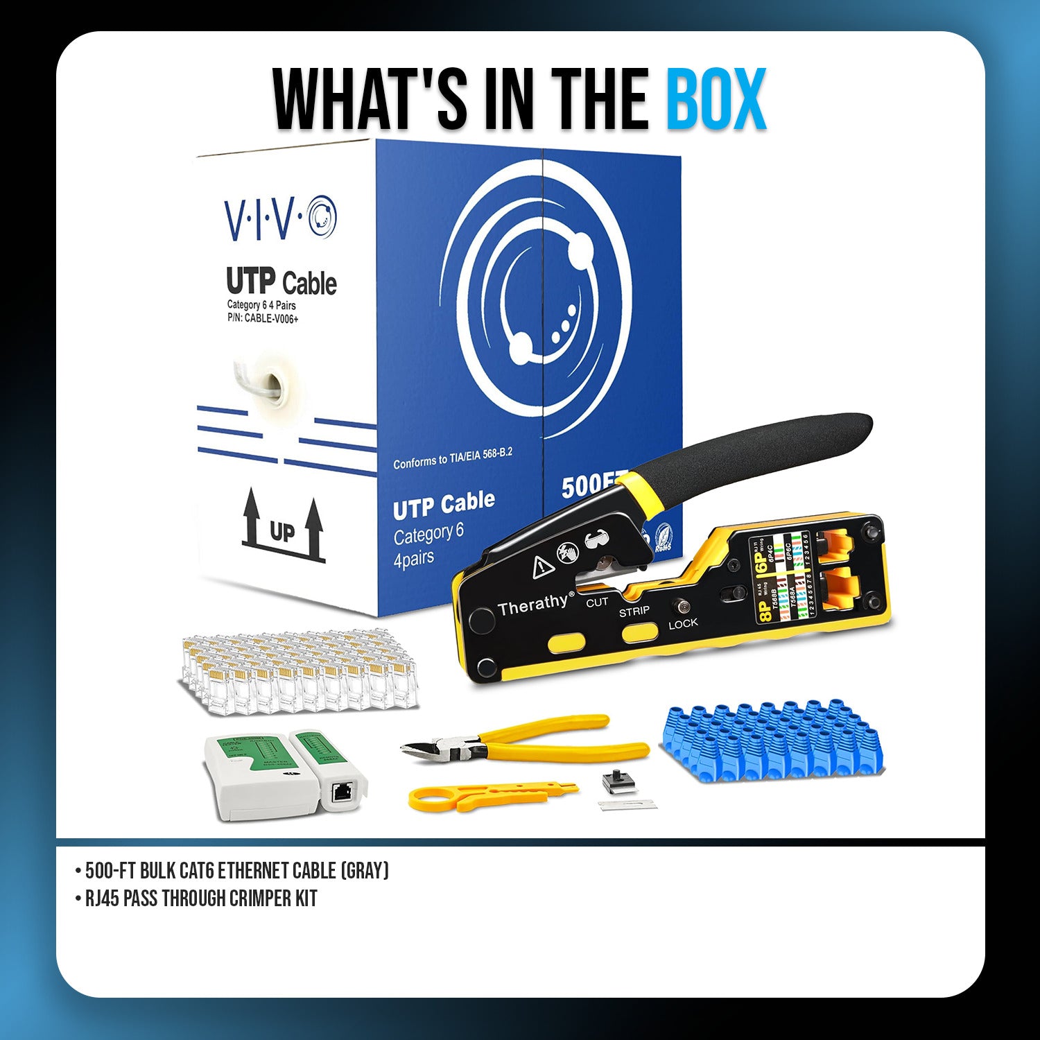500-Ft Bulk Cat6 Ethernet Cable (Gray) with RJ45 Pass Through Crimper Kit Bundle
