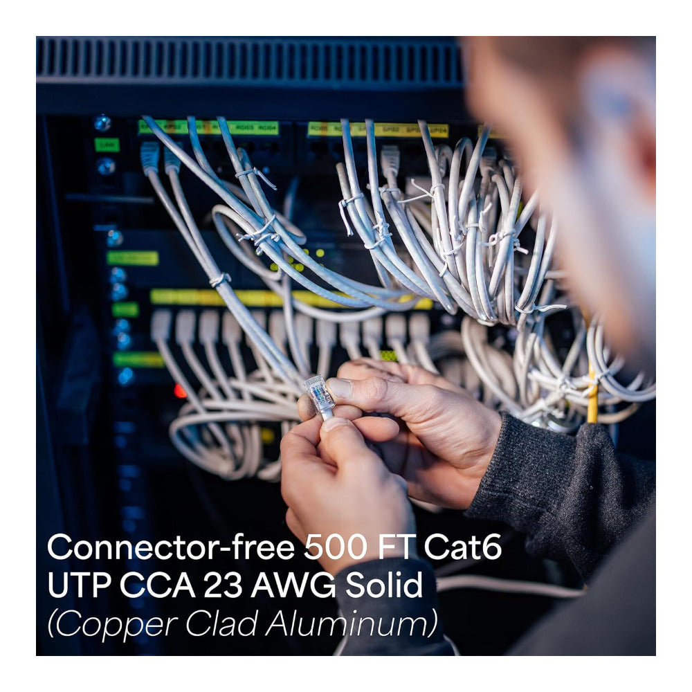 | Cable Type | Cat6 Bulk Ethernet Cable, 500 ft, connector-free |