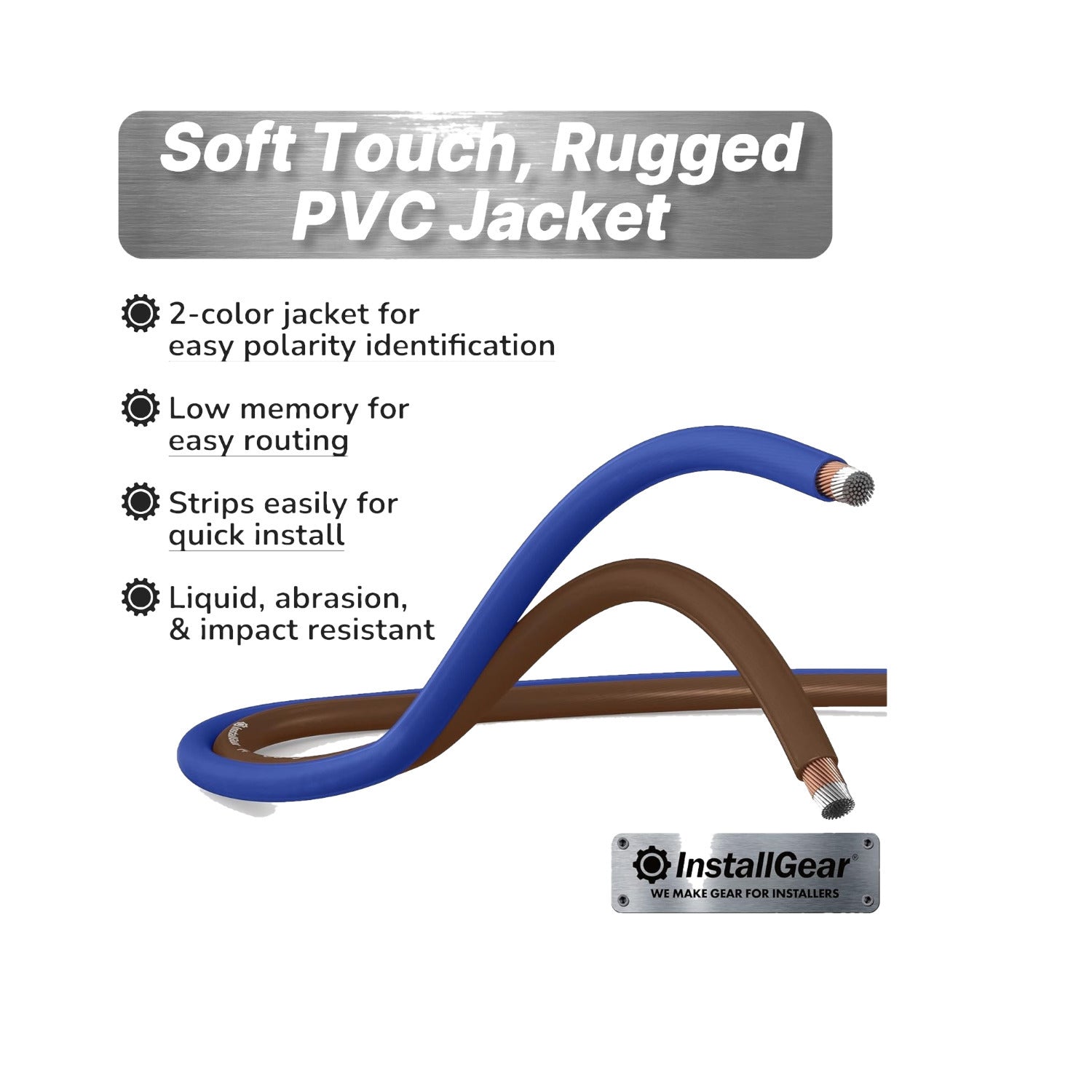 Dual-color (black & blue) outer jacket makes identifying positive and negative wires effortless, minimizing installation errors.