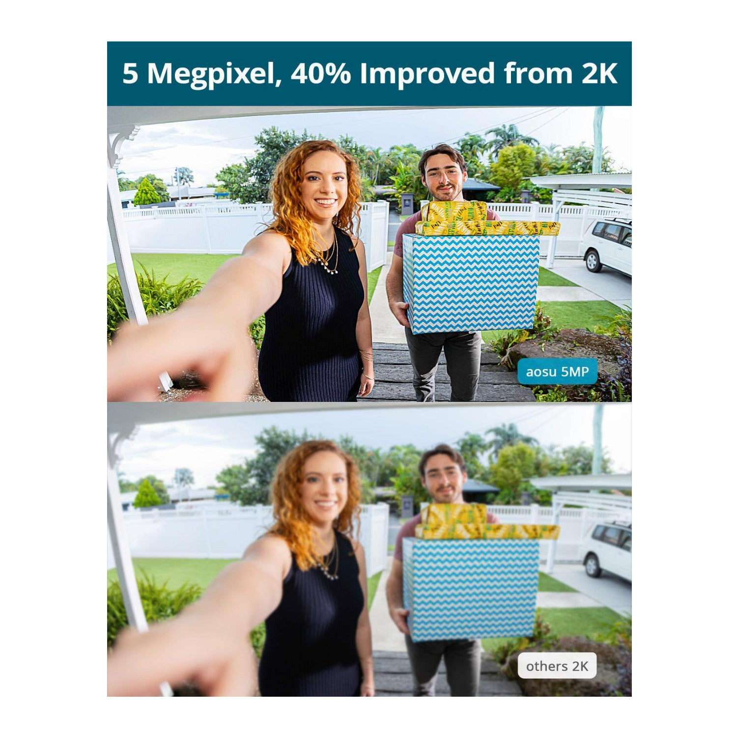 AOSU Waterproof Video Doorbell Ultra with 5MP Ultra HD Camera, Built-In 8GB Memory, and HomeBase