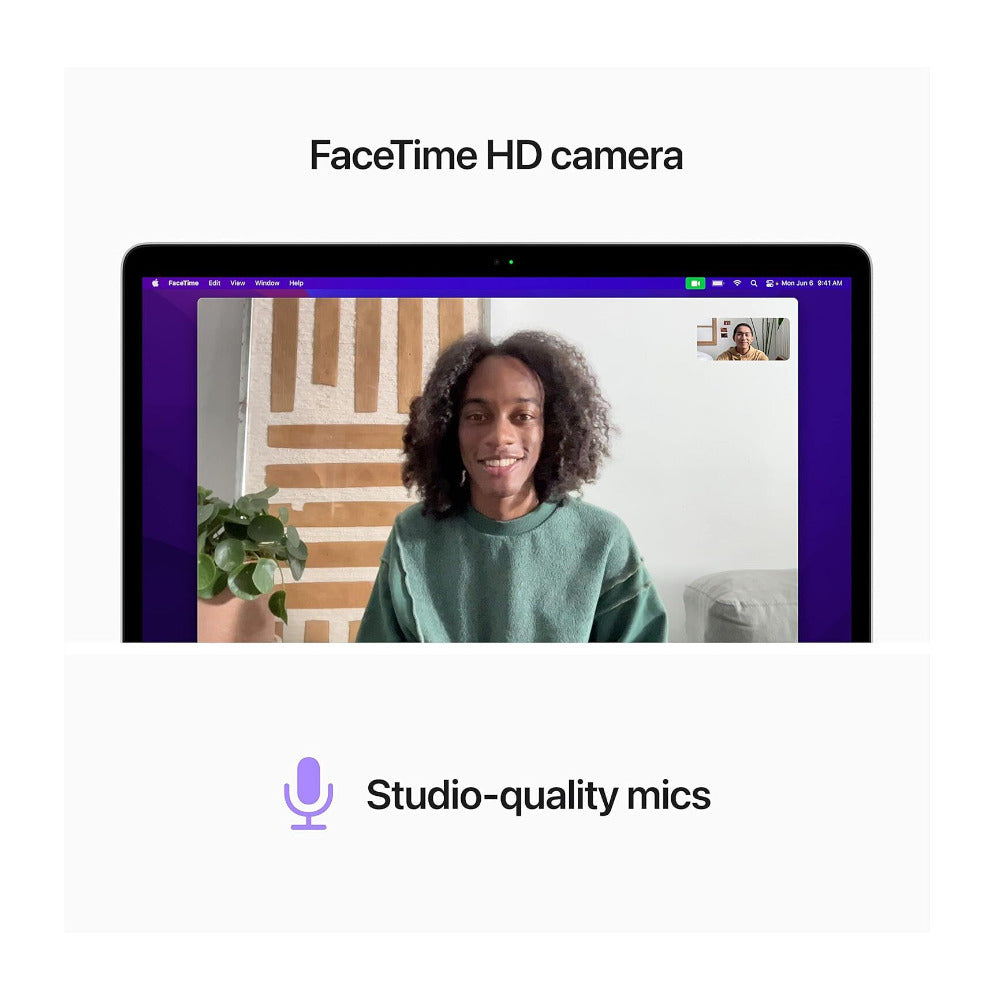FaceTime HD camera paired with a three-mic array ensures clear voice capture and crisp, high-quality video calls.