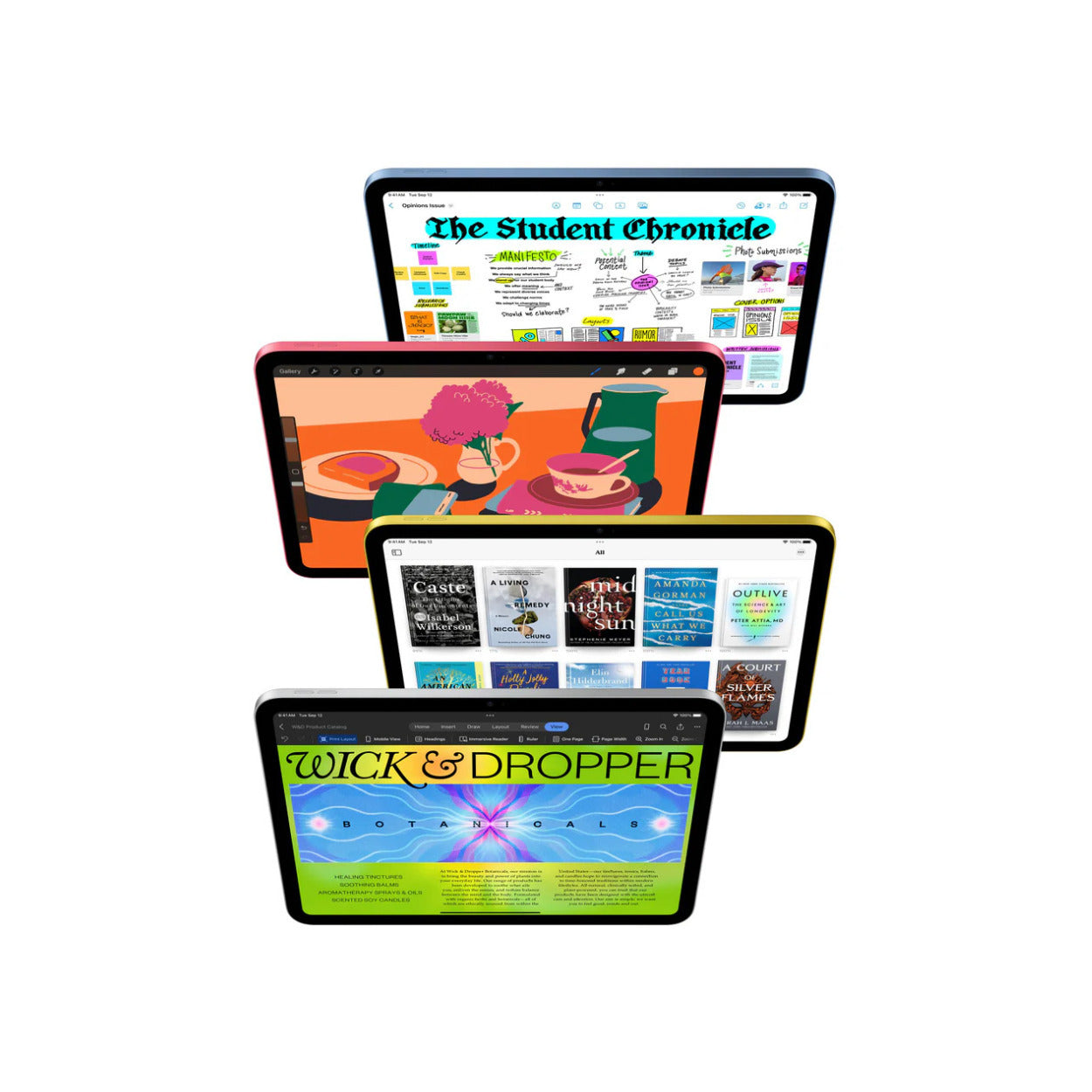 Colorfully reimagined and more versatile than ever. With an all-screen design, 10.9-inch Liquid Retina display, and four gorgeous colors. iPad delivers a powerful way to create, stay connected, and get things done.
