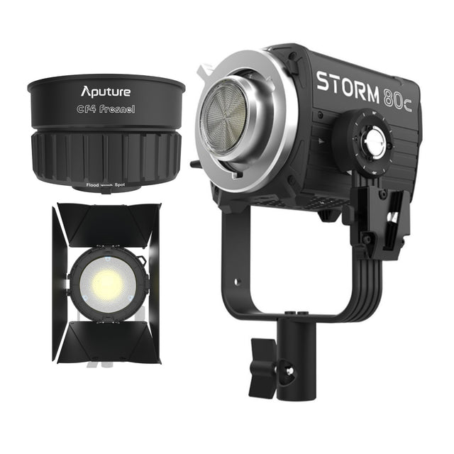 Aputure STORM 80c 80W Tunable Color Point Source Black Fixture with Aputure CF4 Fresnel Bundle