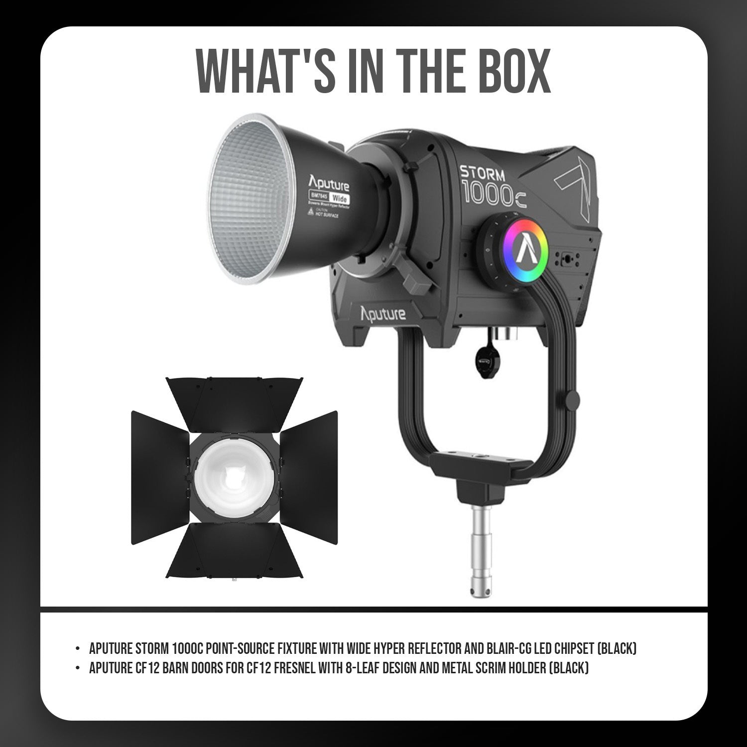 Aputure Storm 1000c Point-Source Fixture with Wide Hyper Reflector (Black) with Barn Doors Bundle