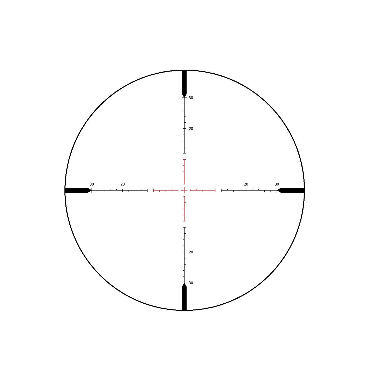 The Midas 4.5-27x50 Scope has an AHMR second focal plane illuminated reticle with MOA subtensions. The reticle has a large illuminated center and is located at the second plane. The illuminated portion of the reticle provides excellent low light visibility and accurate elevation holdovers all the way up to 30 MOA with 2 MOA increment.