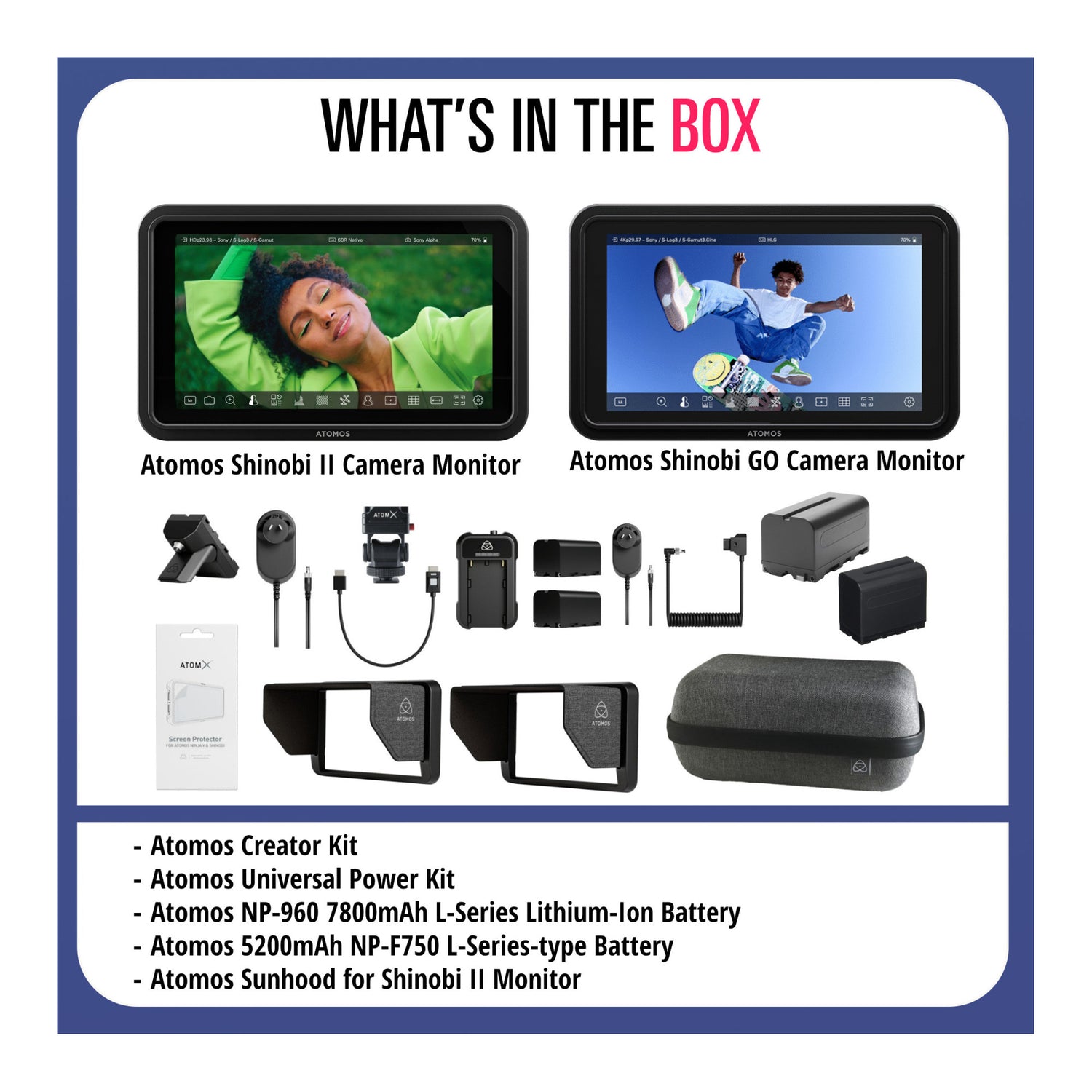 Atomos Shinobi GO and Shinobi II Monitors with Battery, Sunhood and Creator Kit