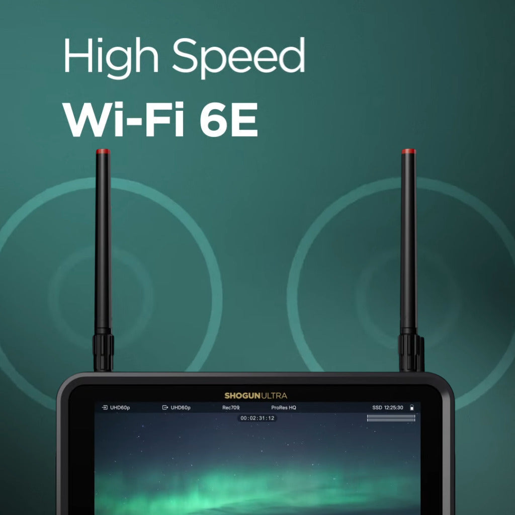 Shogun Ultra has been built with a new operating system AtomOS 11 that host new and exclusive monitoring and recording features that bring creativity to live in every project, from cinematic to social media. RecordAssist and PlayBackAssist cover pre-arranged or remote shots , while improved false color tools like Arri False Color or EL Zone system fit with today's creators needs. It opens up ultra-efficient cloud workflows, including dual record ProRes RAW and H.265 for Camera to Cloud and 4K H.265 for instant publishing from the cloud, and the SDI Cine feature for automated matching filenames, timecode and record trigger from ARRI, Canon, RED and Sony SDI cameras. Share what’s on your Atomos screen with other Atomos OS11 users, iPads, Macs and Apple TVs wirelessly in the same premises or anywhere in the world with full audio comunication between devices in the included feature Atomos RemoteView. These new features bring even more versatility to the Shogun Ultra, providing professional I/O options for a multitude of cameras 12G-SDI, AirGlu wireless timecode and control and up to 4K NDI - from entry level mirrorless cameras through to the latest compact cinema and high-end professional cameras. Shogun Ultra supports WiFi 6E that boosts cloud video workflows offering more a stable conection. Atomos’ close partnerships with major camera manufacturers ensure that Shogun Ultra works flawlessly with an increasing range of DSLR, mirrorless and cinematic cameras.