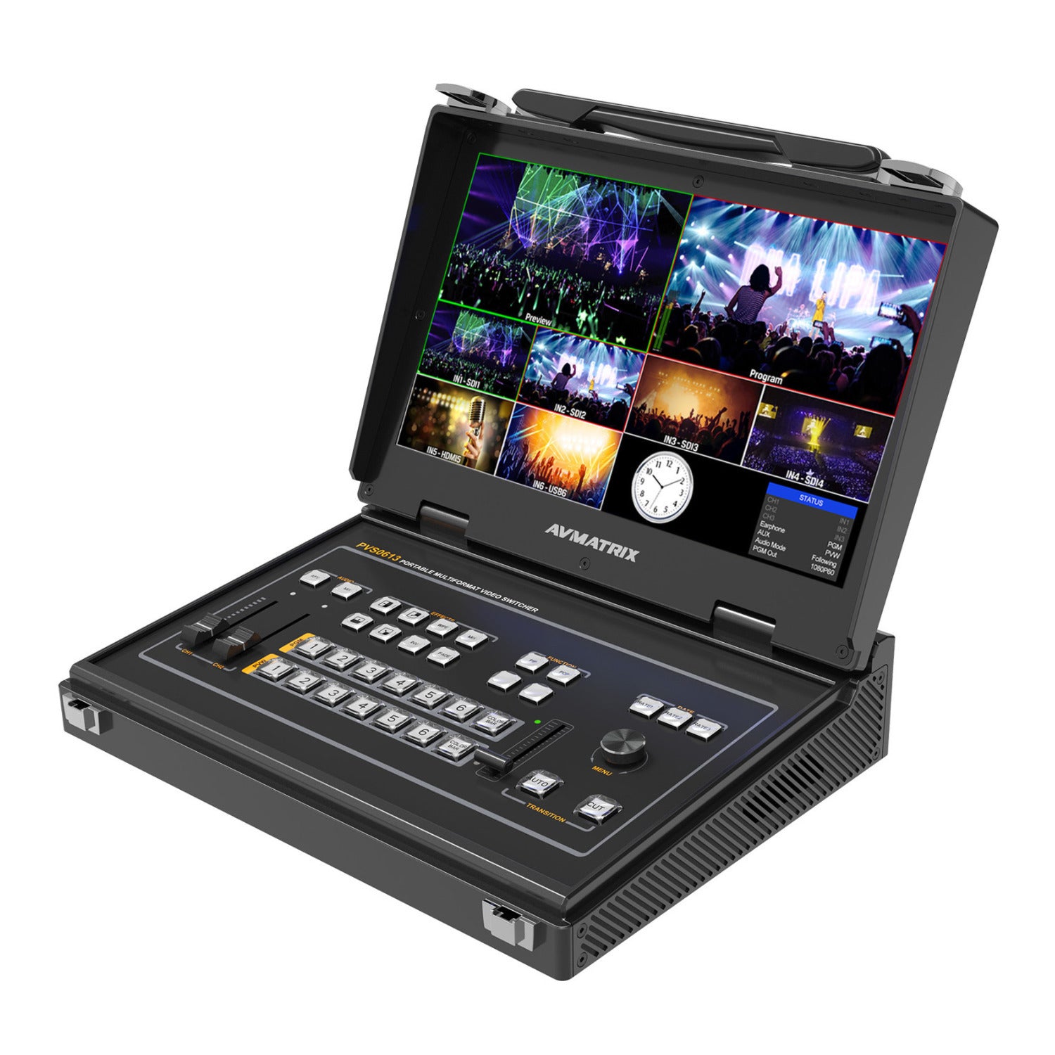 The AV Matrix PVS0613 is an all-in-one switcher with integrated 13.3-inch FHD screen housed in a solid metal case. You can clearly view PVW, PGM with audio bar, multiviewer, clock and menu setting on the screen. This portable 6-channel SDI/HDMI multi-format video switcher features four SDI and two HDMI inputs, along with two SDI, HDMI PGM, SDI PVW, SDI and HDMI multiview outputs. All the connectors are hidden within the metal casing and remain protected from being damaged.